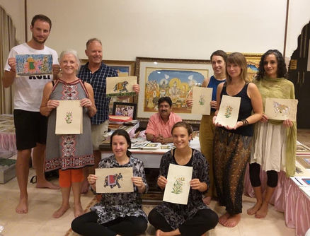 Today, we have students from all corners of the world. Some have taken the opportunity to pursue a deeper understanding and production of Indian Miniature Art. Others have come to broaden their exposure to a historic style. Many have come to learn our teaching methods, supplementing their educational journey by utilizing our structure to teach and earn a livelihood independently while helping keep traditional Indian Art alive.